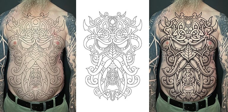 Tatoueur à Paris spécialisé en tatouages nordiques et vikings. Je travaille depuis 15 ans des designs uniques et personnalisés.